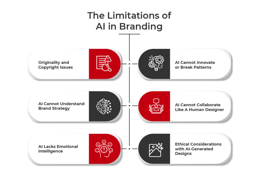 AI Cannot Understand Brand Strategy: Brand identity is strategic at the core, however, AI lacks the ability to understand business goals and market dynamics. It cannot perform strategic tasks such as:
